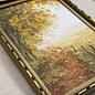 Dieses einzigartige Goauchegemälde wurde direkt auf das Format des Rahmens angepasst und ist fest darin eingesetzt. Es zeigt einen goldenen Herbstpfad. Der hölzerne Rahmen ist ein Second-Hand-Fundstück vom Flohmarkt und die Rückwand wurde erneuert, um die Stabilität zu gewährleisten. Zum Schutz der Farbleuchtkraft wird das Gemälde ohne Glas geliefert. Die Optik des älteren Holzrahmens unterstreicht die Individualität des Werkes und passt farblich. Ein Einzelstück mit gebrauchten, sichtbaren Spuren und eigenem Charakter.