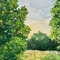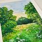 Dieses Gouachegemälde zeigt eine sommerliche Wiese in lebhaften Grüntönen, die mit weißen Blumen gesprenkelt ist. Der helle Himmel verstärkt die fröhliche Atmosphäre und lässt die satten Farben der Wiese besonders strahlen. Ein harmonisches Bild, dass die Leichtigkeit und Schönheit eines sonnigen Sommertages einfängt.